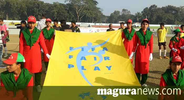 উদ্বোধনী খেলায় স্বাগতিক মাগুরা জেলা দলের মুখোমুখি হয় নড়াইল জেলা দল। নির্ধারিত সময়ে খেলা ১-১ গোলে ড্র হয়। মাগুরার পক্ষে বাঙ্গুরা ও নড়াইলের পক্ষে আরাফাত একটি গোল করেন। ফলাফল নির্ধারনের জন্য খেলা গড়ায় টাইব্রেকারে। সেখানে দুই দল ৭ টি করে সট নিলেও উভয় দল ৬ টি করে গোল করে। পরে আলোর সল্পতার কারনে ফলাফল অমিমাংসীত রেখেই খেলা শেষ হয়। খেলাটি পরবর্তিতে ৬ জানুয়ারি অনুষ্ঠিত হবে।