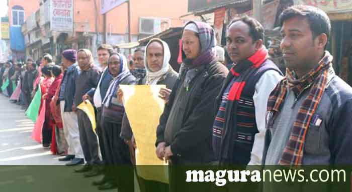 মাগুরায় ১১দফা ‍দাবিতে শিক্ষকদের মানববন্ধন
