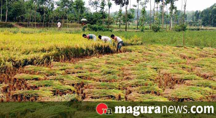 মাগুরাতে পুরোদমে আমান ধান কাটা শুরু হয়েছে। সকাল থেকে রাত পর্যন্ত চলছে ধান কাটা ও মাড়াইয়ের কাজ। এবার কৃষকের চোখেমুখে আনন্দের হাসি। আমনের বাম্পার ফলনে ধান কাটা উৎসবে কোমর বেঁধে নেমেছেন কৃষাণ-কৃষাণিরা।