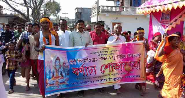 দুপুরে শিবরাত্রি উপলক্ষে বণ্যাঢ্য শোভাযাত্রা আড়পাড়া কেন্দ্রীয় মহাশশ্মান থেকে বের হয়ে বাজার প্রদক্ষীন শেষে চুকিনগর গঙ্গা মন্দিরে শেষ হয়।