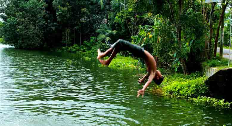 তীব্র গরমে শুধু গ্রামে নয়, শহরের পুকুর ও জলাশয়গুলোতেও ঝাঁপাঝাঁপিতে মেতে উঠেছে শিশু-কিশোররা।
