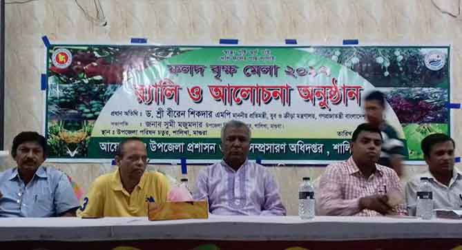 মাগুরার শালিখায় ৩ দিনব্যাপী ফলদ বৃক্ষ মেলা আজ থেকে শুরু হয়েছে। উপজেলা প্রশাসন ও কৃষি অধিদপ্তরের উদ্যোগে সকালে র্যালি অনুষ্ঠিত হয়। এরপর মেলার উদ্বোধন করেন উপজেলা আ’লীগের সাধারণ সম্পাদক ও সাবেক উপজেলা চেয়ারম্যান এ্যাড. শ্যামল কুমার দে।