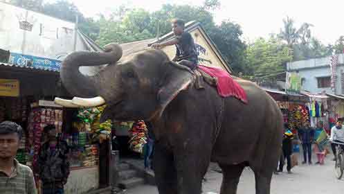 এখন মানুষের বাড়ির আঙ্গিনাও নেই কলাগাছও নেই। তারা এখন হাতি নিয়ে দোকানে দোকানে গিয়ে এবং ক্ষুদে যানবাহনের সামনে দাঁড়িয়ে টাকা উঠায় এমনটাই হাতির মাহুতের দাবি।