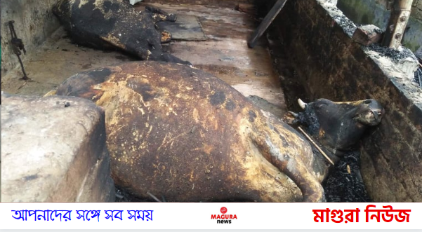 শ্রীপুর উপজেলার নাকোল ইউনিয়নের সাফলগাছা গ্রামে রোববার (ভোর) রাতে রহমত শেখ নামের এক কৃষকের গোয়াল ঘর অগ্নিকান্ডে পুড়ে ২ টি গরুর মৃত্যু হয়েছে এবং আরো ২ টি গরুর শরীর পুড়ে ঝলসে যাওয়া সহ অন্যান্য মালামাল পুড়ে আনুমানিক ৬ লক্ষাধিক টাকার ক্ষতি হয়েছে। রহমত শেখ জানান, অন্য দিনের মতো রোববার রাতে বাড়িতে সবাই ঘুমিয়ে ছিলেন। ভোর আনুমানি ৩ টায় দিকে বিকট শব্দ শুনে তাদের ঘুম ভেঙ্গে যায় । এ সে দেখেন তার গোয়াল ঘরের ভিতর আগুন জ্বলছে। তার চিৎকারে গ্রামবাসী ছুটে এসে আগুন নেভানোর চেষ্টা করে। ক্ষতিগ্রস্ত রহমত শেখের ধারনা বৈদ্যুতিক শর্ট সার্কিট থেকে অগ্নিকান্ডের সূত্রপাত হয়েছে। এতে ঘটনাস্থলেই ২ টি গরুর মৃত্যু হয়েছে এবং আরো ২ টি গরুর শরীর পুড়ে ঝলসে গেছে। এছাড়া অন্যান্য মালামাল পুড়ে আনুমানিক ৬ লক্ষাধিক টাকার ক্ষতি হয়েছে। মাগুরা ফায়ার সার্ভিসের সংবাদ দেওয়ার জন্য বার বার ফোন দিলেও ফায়ার সার্ভিস কর্তৃপক্ষ ফোন ধরে নাই বলে অভিযোগ করেন ক্ষতিগ্রস্থ পরিবারটি। পরে স্থানীয় এলাকাবাসীর সহযোগীতায় ও বৃষ্টির জন্য আগুন নিয়ন্ত্রণে আনতে সক্ষম হয়। এ ব্যাপারে মাগুরা ফায়ার সার্ভিস স্টেশনে যোগাযোগ করলে কর্তব্যরত ডিউটি অফিসার জানান, আমাদের আগের মোবাইল নাম্বারটি গত ৭ দিন যাবত ব্যবহার হচ্ছে না। বর্তমানে নতুন একটি নাম্বার ব্যবহার হচ্ছে।সে কারণে আমরা অগ্নিকান্ডের কোন সংবাদ পাইনি।