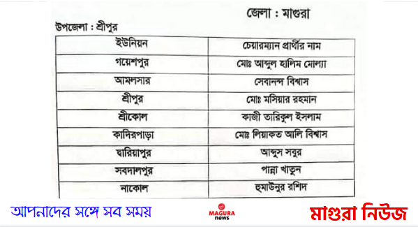 ৪র্থ ধাপে ইউনিয়ন পরিষদ নির্বাচনে মাগুরার শ্রীপুর উপজেলার তিনটিতে পরিবর্তন হলেও অপরিবর্তিত রয়েছে পাঁচটি। এরই মধ্যে ৪র্থ ধাপের ইউনিয়ন পরিষদ নির্বাচনে ক্ষমতাসীন আওয়ামী লীগের প্রার্থী চুড়ান্ত হয়েছে। রোববার দুপুরে আওয়ামী লীগের কেন্দ্রীয় কার্যালয় থেকে প্রার্থীদের তালিকা প্রকাশ হয়। শ্রীপুর উপজেলায় দলীয় প্রতিক প্রাপ্তিরা হলেন, শ্রীকোল ইউনিয়নের বর্তমান চেয়ারম্যান মোস্তাসিম বিল্লাহ সংগ্রামের পরিবর্তে উপজেলা আওয়ামী লীগের যুগ্ম-সাধারণ সম্পাদক কাজী তারিকুল ইসলাম, দারিয়াপুর ইউনিয়নে বর্তমান চেয়ারম্যান জাকির হোসেন কাননের পরিবর্তে আব্দুস সবুর, সব্দালপুর ইউনিয়নে বর্তমান চেয়ারম্যান নুরুল মোল্লার পরিবর্তে পান্না খাতুন দলীয় প্রতিক পেয়েছেন। এছাড়া গয়েশপুর ইউনিয়নে মোঃ আব্দুল হালিম মোল্লা, আমলসার ইউনিয়নে সেবানন্দ বিশ্বাস, শ্রীপুর ইউনিয়নে মোঃ মশিয়ার রহমান, কাদিরপাড়া ইউনিয়নে মোঃ লিয়াকত আলী, নাকোল ইউনিয়নে মোঃ হুমায়ুনুর রশিদ মুহিতের নাম অপরিবর্তিত রয়েছে। তফসিলের তথ্য অনুযায়ী, আগামী ২৩ ডিসেম্বর সারাদেশের ৮৪০টি ইউনিয়ন পরিষদে জনপ্রতিনিধি নির্বাচনে ভোট নেওয়া হবে। ৩০ নভেম্বর থেকে ২ ডিসেম্বর পর্যন্ত বাছাইয়ে বৈধ প্রার্থীরা মনোনয়নপত্র প্রত্যাহার করতে পারবেন। প্রার্থিতা প্রত্যাহারের সময় শেষ হলে ৬ ডিসেম্বর প্রতিদ্বন্দ্বী প্রার্থীদের মধ্যে প্রতীক বরাদ্দ দেওয়া হবে। দুই সপ্তাহের প্রচার-প্রচারণা শেষে ২৩ ডিসেম্বর ভোট নেওয়া হবে।