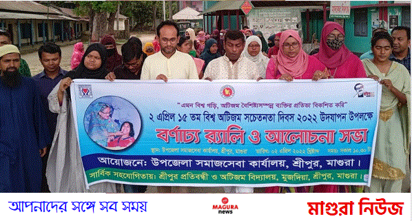 “এমন বিশ্ব গড়ি , অটিজম বৈশিষ্ট্যসম্পন্ন প্রতিভা বিকাশ করি”– এই প্রতিপাদ্যকে সামনে রেখে মাগুরার শ্রীপুরে ১৫ তম বিশ্ব অটিজম সচেতন দিবস পালিত হয়েছে। এ উপলক্ষে উপজেলা সমাজসেবা কার্যালয়ের আয়োজনে ও শ্রীপুর প্রতিবন্ধী ও অটিজম বিদ্যালয়ের সার্বিক সহযোগিতায় বর্ণাঢ্য র্যালি ও আলোচনা সভা অনুষ্ঠিত হয়।