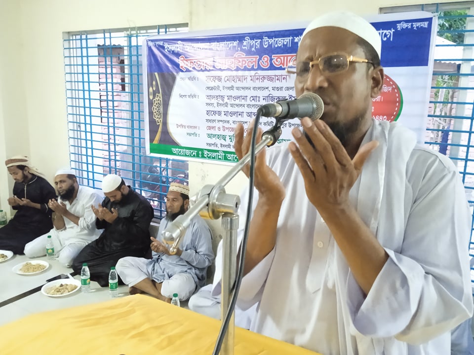 ইসলামী আন্দোলন বাংলাদেশ শ্রীপুর উপজেলা শাখার সভাপতি আলহাজ্ব মুন্সি আমনউল্লাহ আমানের সভাপতিত্বে অনুষ্ঠানে প্রধান অতিথি হিসেবে উপস্থিত ছিলেন ইসলামী আন্দোলন বাংলাদেশ মাগুরা জেলা শাখার সেক্রেটারী হাফেজ মোহম্মদ মনিরুজ্জামান।