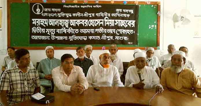 মুক্তিযুদ্ধে শ্রীপুর বাহিনীর অধিনায়ক মরহুম আকবর হোসেন মিয়ার দ্বিতীয় মৃত্যুবার্ষিকী উপলক্ষে আলোচনা সভা ও দোয়া মাহফিল অনুষ্ঠিত হয়েছে।
